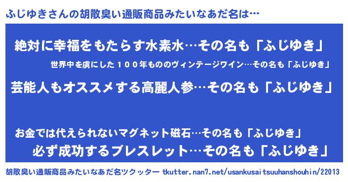 | 意味不明あだ名 | 『自称ふじゆき』『永久保存ふじゆき』 |