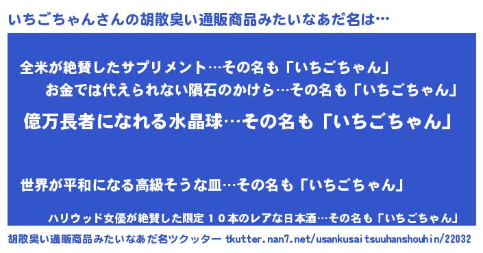 | 欧米人風あだ名 | 『マイケルいちごちゃん』 |