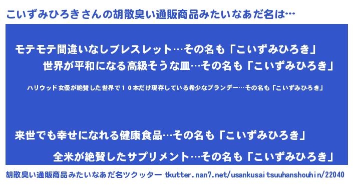 | 意味不明あだ名 | 『住所不定無職こいずみひろき(71歳)』 |
