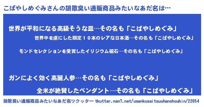 | ヘコむあだ名 | 『酢こんぶ』『こばっ子』『こばもー』 |