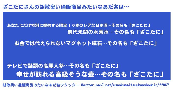 | 意味不明あだ名 | 『眠気覚ましガムざこたに味』 |