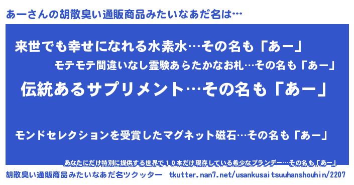 | 意味不明あだ名 | 『とにかく怪しいあー』『永久保存あー』 |