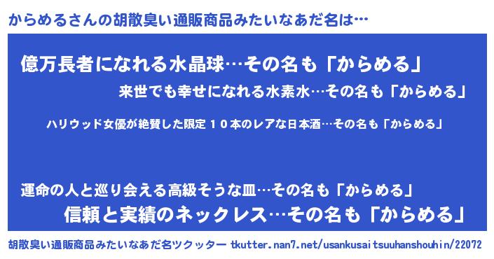 | 意味不明あだ名 | 『住所不定無職からめる(40歳)』 |
