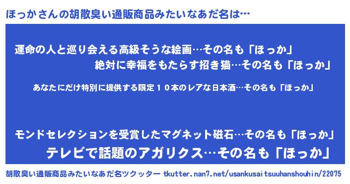 | ヘコむあだ名 | 『酢こんぶ』『ほっか(小並感)』 |