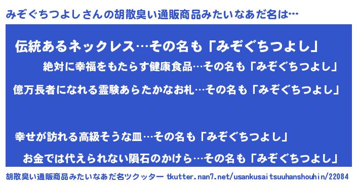 | 肩書あだ名 | 『みぞぐちつよし御曹司』 |