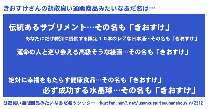 | ヘコむあだ名 | 『酢こんぶ』『きおお』『きおもー』 |