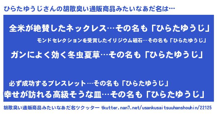 | 意味不明あだ名 | 『自称ひらたゆうじ』 |