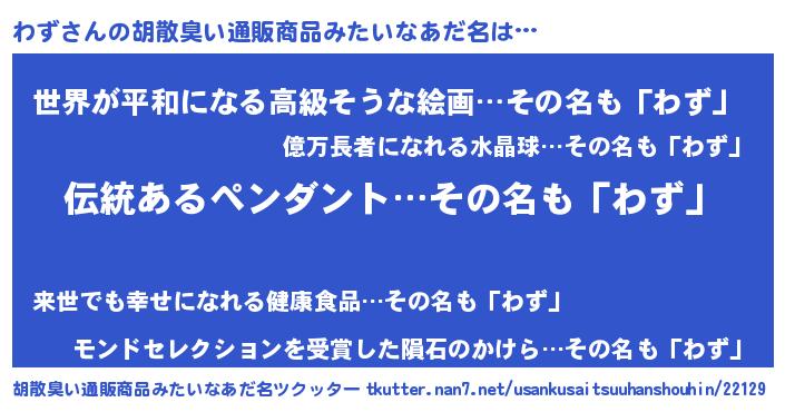 | ヒーロー風カッコイイあだ名 | 『銀牙騎士ワズ』『ウルトラわずマン』 |