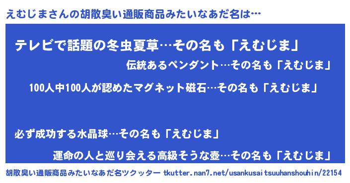 | 男性向けラノベタイトル風あだ名 | 『おまえをオタクにしてやるから、俺をえむじまにしてくれ! 』 |