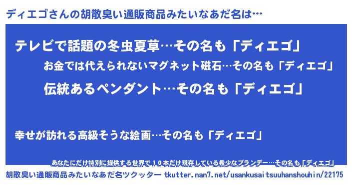 | 男性向けラノベタイトル風あだ名 | 『転生したらディエゴだった件』 |