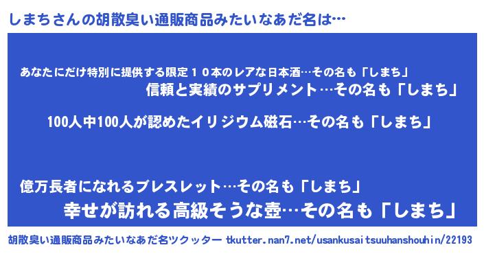 | ヘコむあだ名 | 『つくし』『しまぷりん』 |