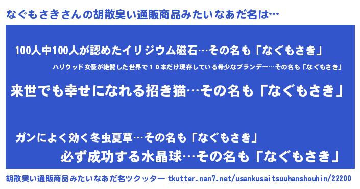 | 意味不明あだ名 | 『永久保存なぐもさき』『自称なぐもさき』 |