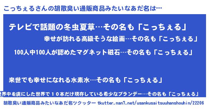 | ヘコむあだ名 | 『つくし』『こっちぇる(震え声)』 |