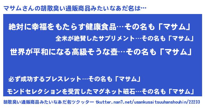 | 意味不明あだ名 | 『マサムフォーエバー』『永久保存マサム』 |
