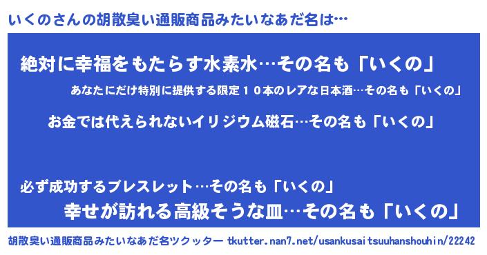 | ヘコむあだ名 | 『いくの(爆)』『つくし』『いくもー』 |