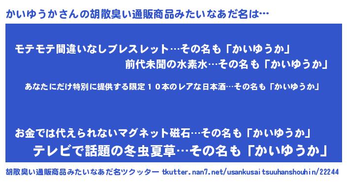 | 意味不明あだ名 | 『住所不定無職かいゆうか(41歳)』 |