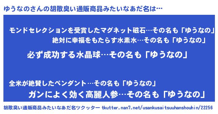 | 意味不明あだ名 | 『ペロリンゆうなの』『自称ゆうなの』 |