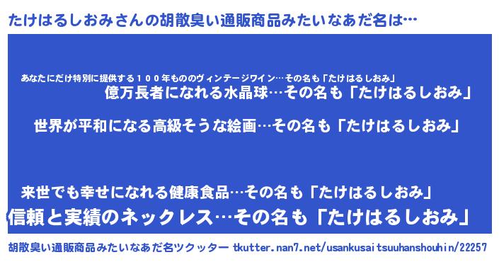 | 意味不明あだ名 | 『たけはるしおみフォーエバー』 |