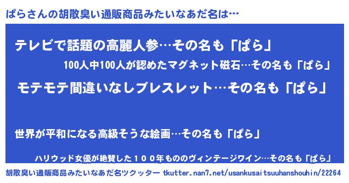| 恥ずかしいあだ名 | 『プリティーぱら』『パラデラックス』 |