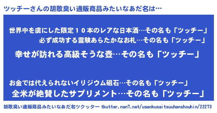 | 男性向けラノベタイトル風あだ名 | 『やはりツッチーの青春ラブコメはまちがっている 』 |