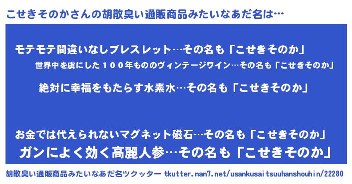 | 意味不明あだ名 | 『永久保存こせきそのか』 |