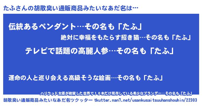 | ヘコむあだ名 | 『たふ太郎』『たふ(笑)』『なまこ酢』 |