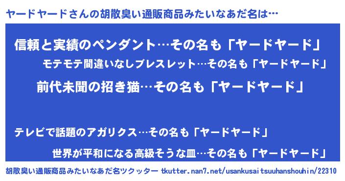 | 意味不明あだ名 | 『永久保存ヤードヤード』 |
