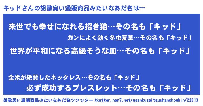 | 意味不明あだ名 | 『キッドフォーエバー』『永久保存キッド』 |