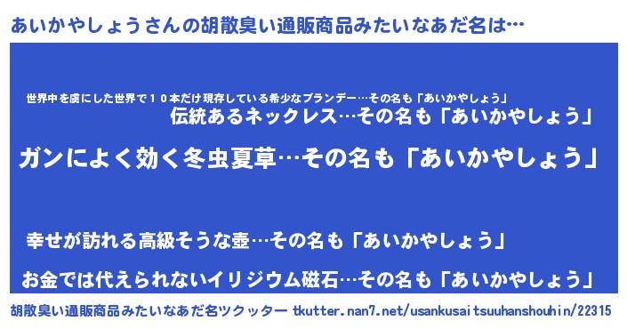 | 恥ずかしいあだ名 | 『アイカヤショウデラックス』『あいちん』 |