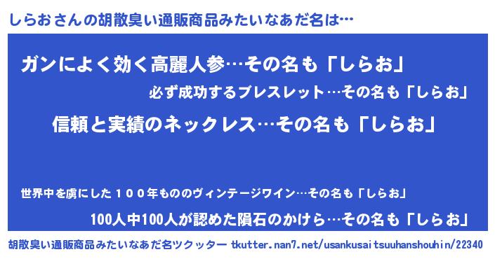 | 男性向けラノベタイトル風あだ名 | 『シラオスレイヤー』『しらおの憂鬱』 |
