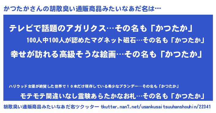 | 意味不明あだ名 | 『かつたかフォーエバー』『自称かつたか』 |