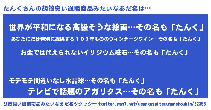 | ヒーロー風カッコイイあだ名 | 『友情の使者たんく』『最強戦士タンク』 |