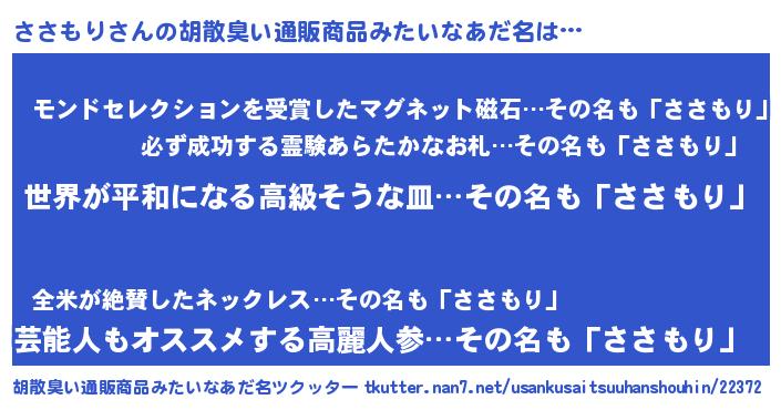 | 意味不明あだ名 | 『ささもりフォーエバー』『自称ささもり』 |
