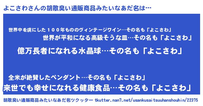 | ヘコむあだ名 | 『よこにゅー』『よこさわ(笑)』 |