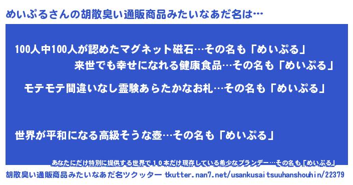| 欧米人風あだ名 | 『マイケルめいぷる』『ダニエルめいぷる』 |
