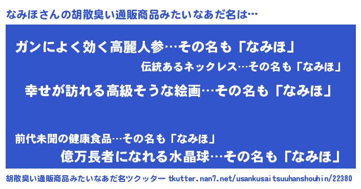 | 意味不明あだ名 | 『なみほフォーエバー』『自称なみほ』 |