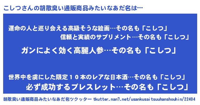 | 女子向けラノベタイトル風あだ名 | 『こしつなんてお断りですっ。』 |