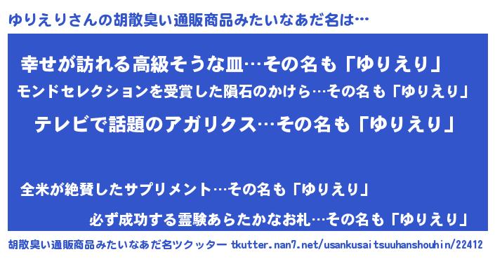 | 意味不明あだ名 | 『自称ゆりえり』『ゆりえりフォーエバー』 |