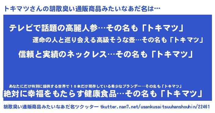 | 欧米人風あだ名 | 『ウサイントキマツ』 |