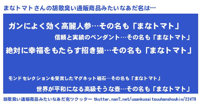 | 伝説のあだ名 | 『聞きしに勝る吟遊詩人まなトマト』 |