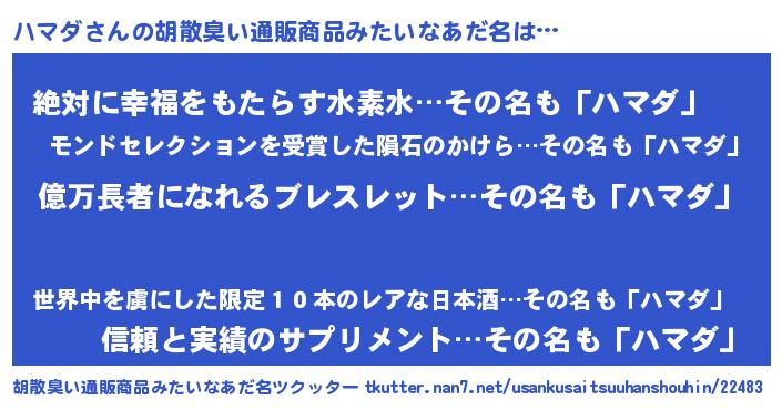 | 意味不明あだ名 | 『ペロリンハマダ』『永久保存ハマダ』 |