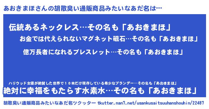 | 肩書あだ名 | 『あおきまほCEO』『あおきまほ中尉』 |