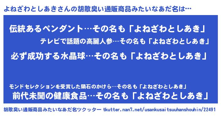 | 肩書あだ名 | 『よねざわとしあき店長』 |