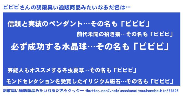 | ヘコむあだ名 | 『ビビにゅー』『ビビぷりん』 |