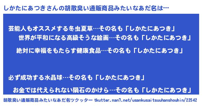 | 意味不明あだ名 | 『永久保存しかたにあつき』 |