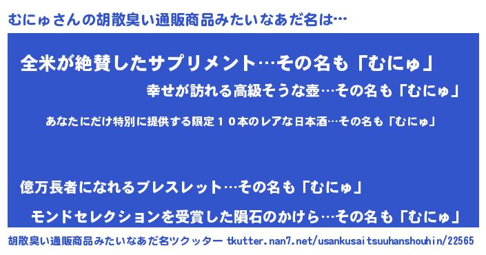 | 意味不明あだ名 | 『住所不定無職むにゅ(53歳)』 |