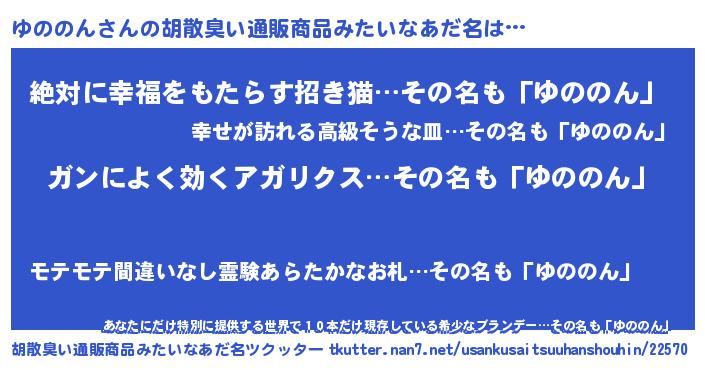 | ヘコむあだ名 | 『ゆののん(爆)』『つくし』 |