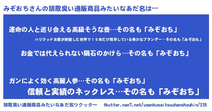 | ヘコむあだ名 | 『豆乳』『みぞっ子』『みぞもー』 |