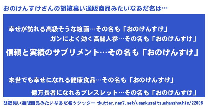 | 意味不明あだ名 | 『とにかく怪しいおのけんすけ』 |