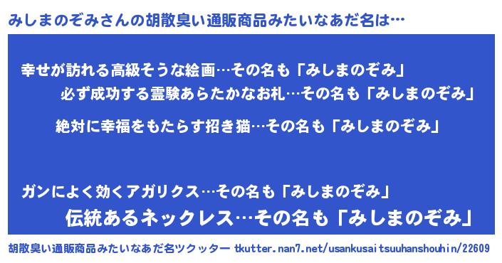| 意味不明あだ名 | 『永久保存みしまのぞみ』 |